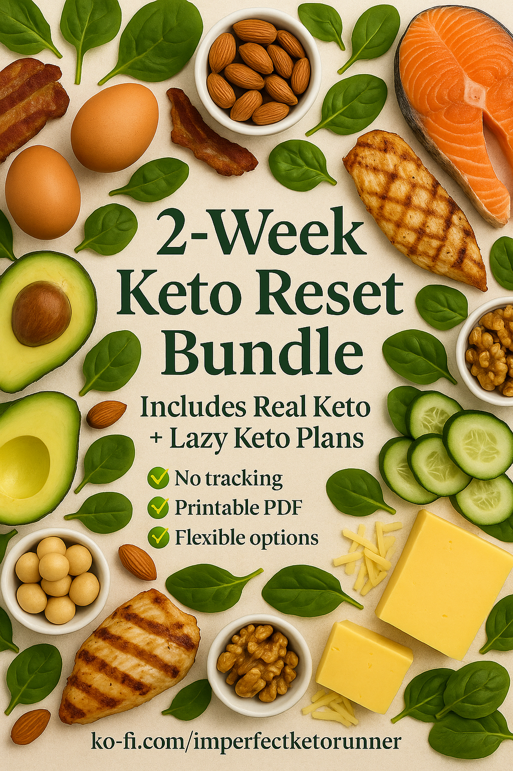 You'll get 2 flexible 7-day keto guides — no tracking, just real food and structure that works — plus a bonus beginner guide to help you start strong.